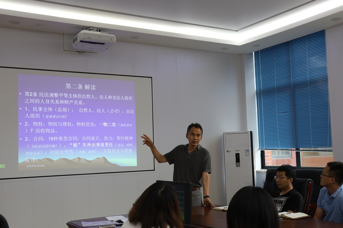 2020年6月29日下午,完场比分 在J6第一会议室开展党委理论中心组第9次学习活动。文法学院李光禄教授受邀为完场比分 讲解民法典,院领导班子、系主任和各党支部书记参加。会上,党委书记秦昌盛针对法律在日常工作的重要...
