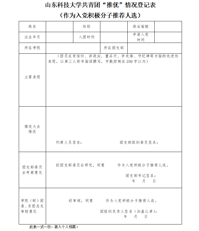 山东科技大学共青团“推优”情况登记表(作为入党积极分子推荐人选)撰写指南: