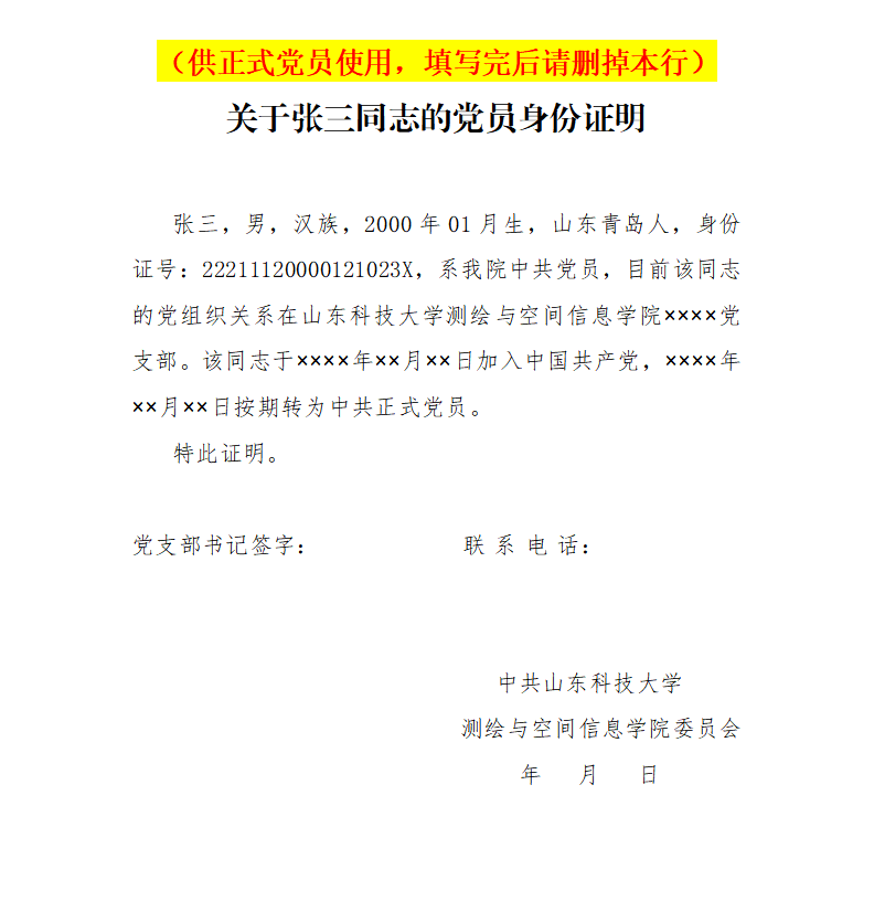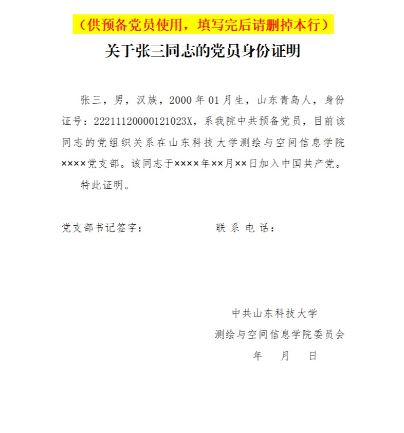 办理流程:自行下载原表见附件,打印前请保证原有的格式效果,打印后请先找党支部书记签字,然后到J6楼460办公室找相应老师盖章。