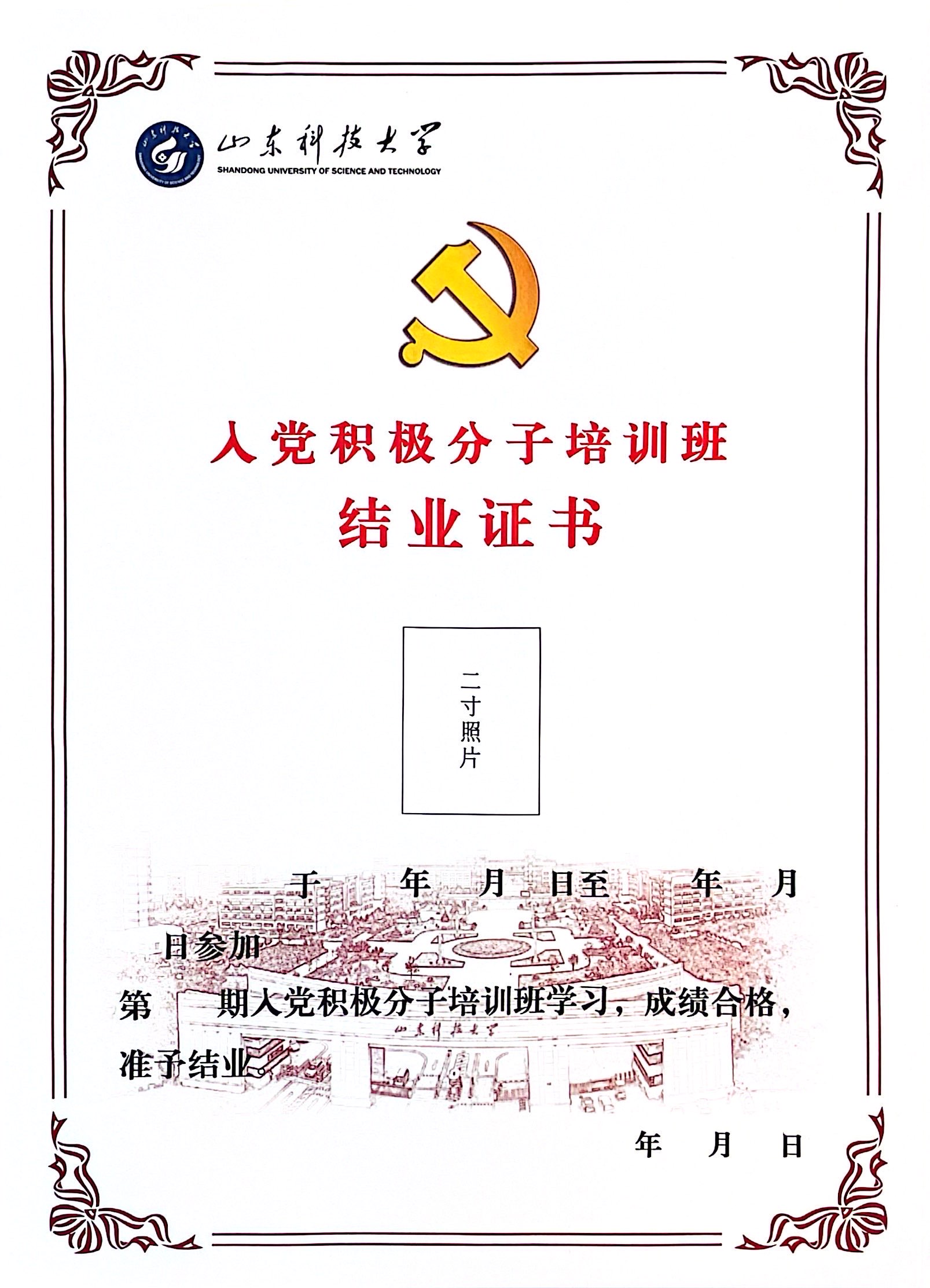 入党积极分子培训班结业证书样例: