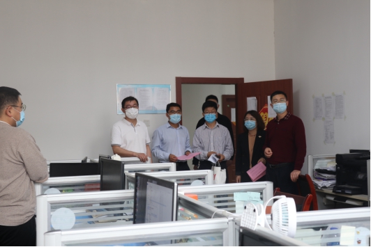 党委书记秦昌盛、院长阳凡林、党委副书记吴昊和全体辅导员到S2研究生自习室看望慰问第一批返校研究生,实时了解学生返校后的日常生活、学习情况。