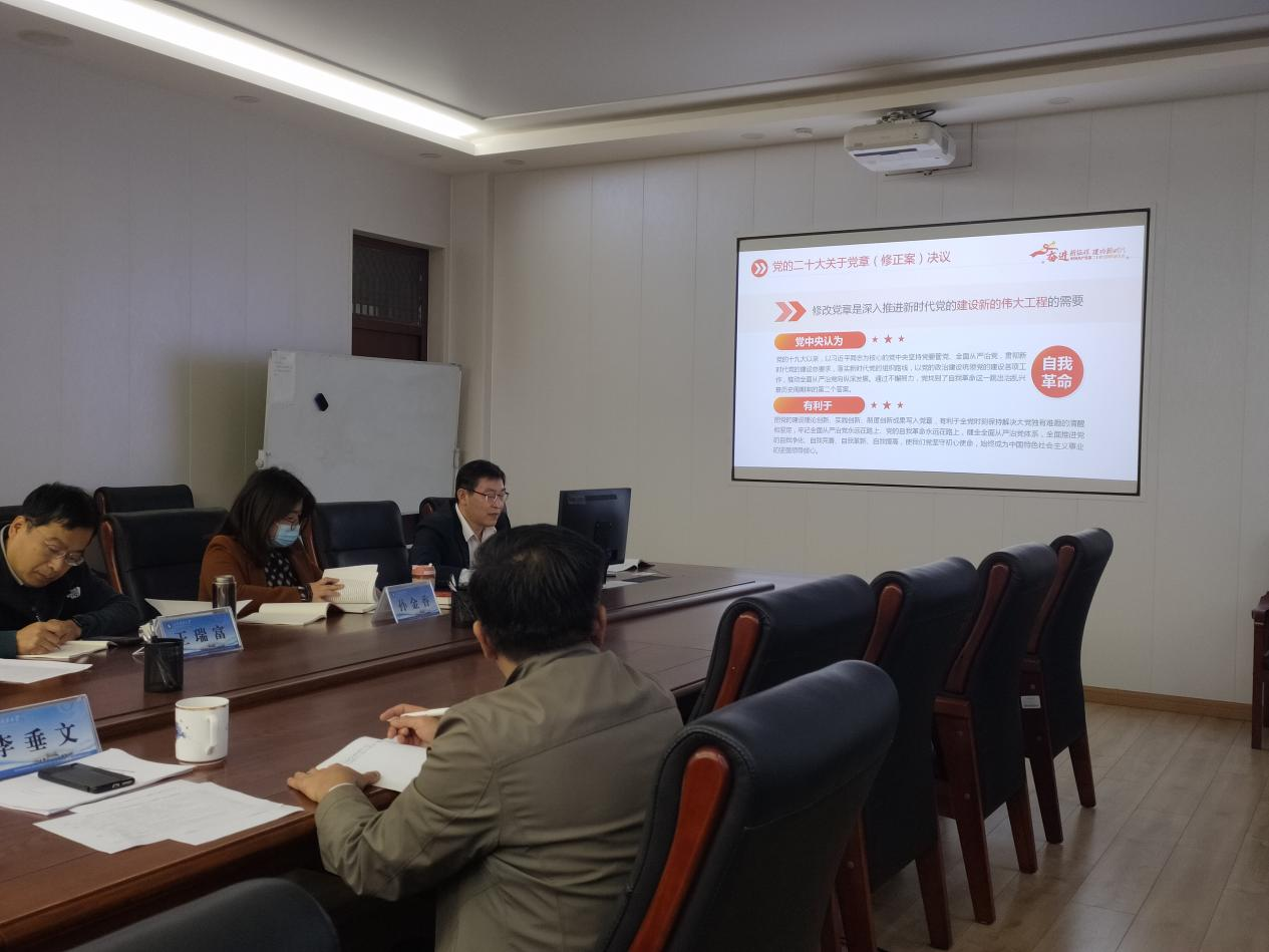 会上,第一阶段与会成员集体观看了专题教育片《领航》之自我革命,对习近平新时代中国特色社会主义思想进行了学习。随后,秦昌盛结合党的二十大关于《中国共产党党章(修正案)》的决议对《中国共产党章程》进行了学习辅导。第二阶段,学院班子成员结合对党的二十大精神的学习体会就如何促进学院高质量发展进行了交流研讨。