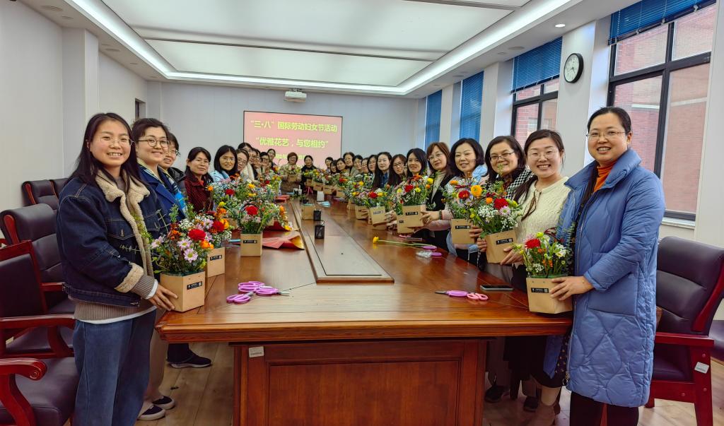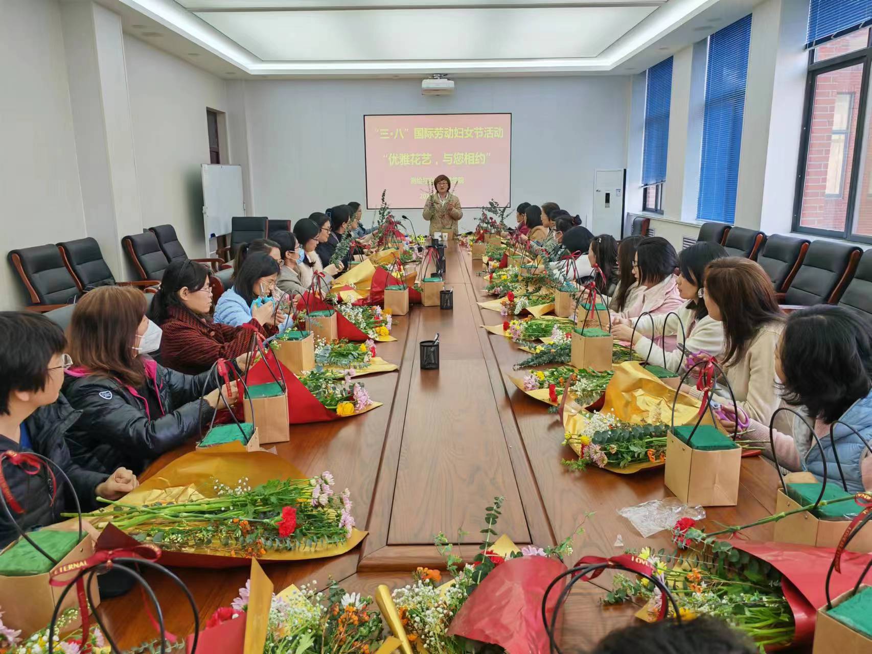 工会于第一会议室举办“优雅花艺,与您相约”插花活动,学院全体女教职工参加。