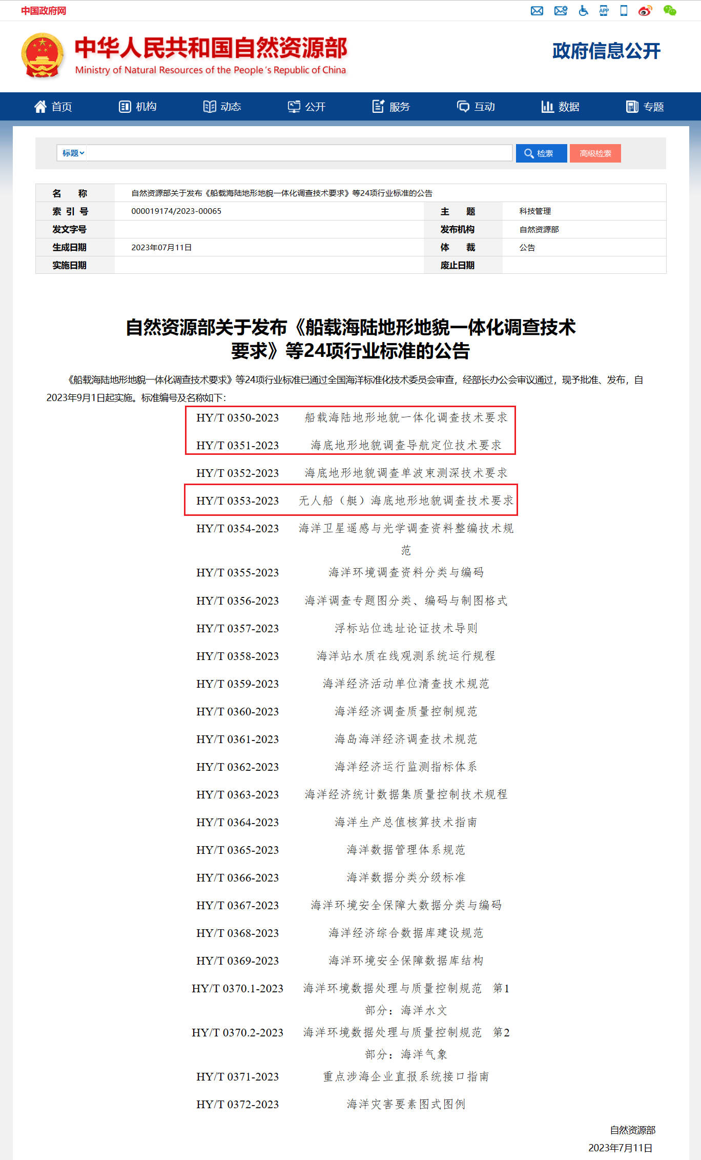同时,我校还作为主要起草单位参与编制了《海底地形地貌调查导航定位技术要求》(标准号HY/T 0351-2023)和《无人船(艇)海底地形地貌调查技术要求》(标准号HY/T 0353-2023)两项海洋行业标准,一并经自然资源部批准、发布。这些标准的制定和实施不仅是我校海洋测绘学科积极服务国家和行业发展的具体体现,还将激励学科团队持续创新,加强与各相关单位的合作,不断推进海洋测绘技术的前沿研究和应用,为国家海洋事业的可持续发展做出更大贡献。(通讯员:亓超)