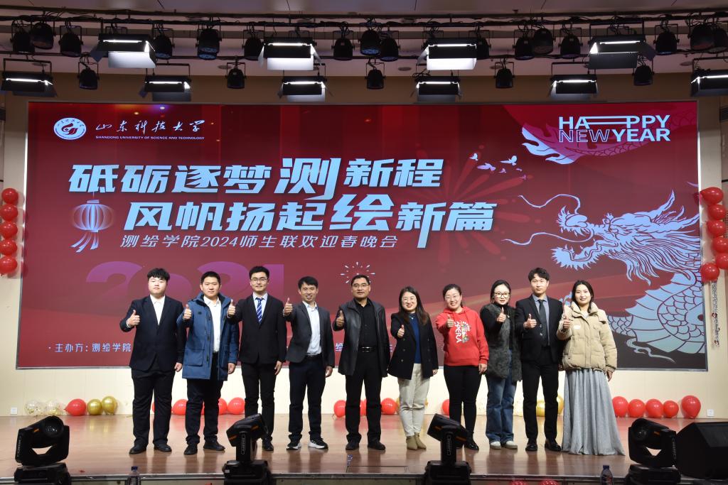 师生联欢迎春晚会在大学生活动中心二楼报告厅成功举办。晚会主持人由校友、教职工和学生四人组成,全院师生与校友们欢聚一堂,共迎新春。