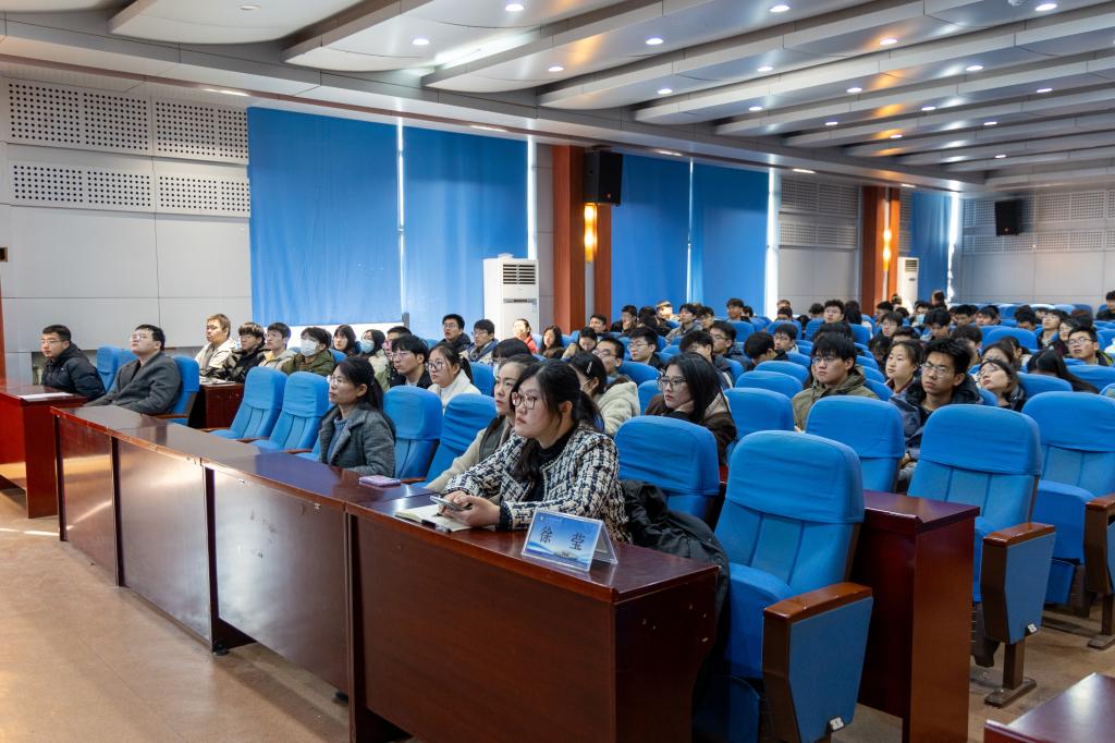 副院长徐莹主持,学院相关专业师生到会听讲。