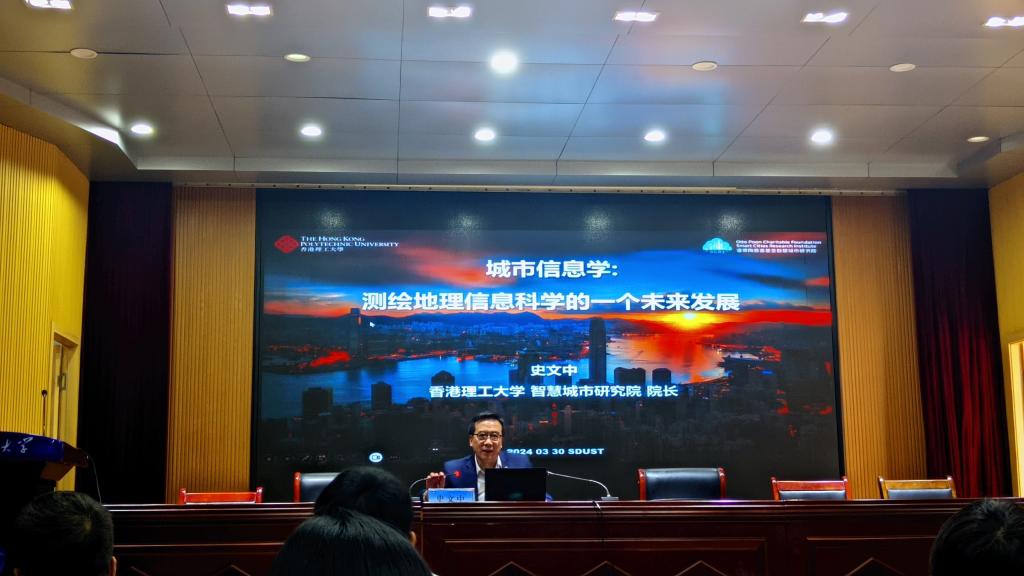 会上,史文中教授详细介绍了城市信息学的概念和涉及的领域。他以“新冠病毒发病风险预测系统”为例,介绍了团队在智慧城市平台、人工智能变化检测技术以及实景三维中国香港数据质量检查技术等方面的研究。他还展望了数字孪生、GeoAI、高精地图、城市韧性和城市健康等前沿技术在智慧城市发展中的应用前景,并现场回答了师生提问。