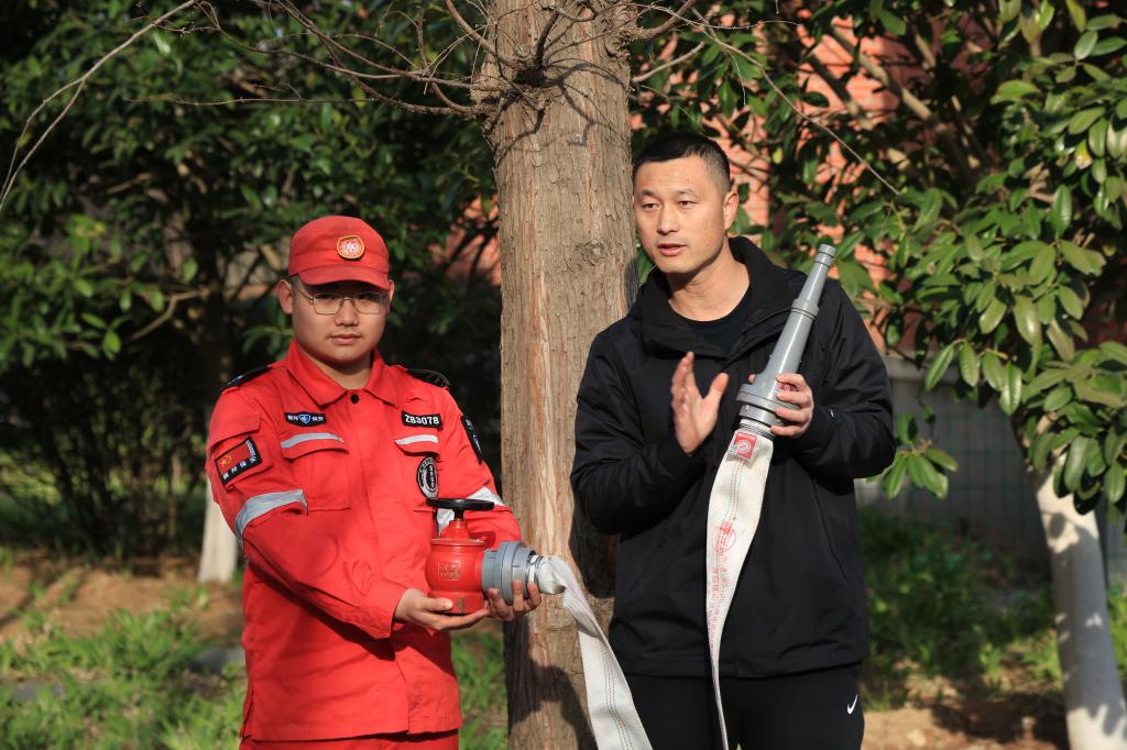 随着疏散撤离工作的完成,师生们集体来到了J14南侧进行灭火培训和消防实战练习。讲解员详细介绍了火情出现时的应急处理流程,展示了手提式干粉灭火器和消火栓的正确操作方法,师生们纷纷前去尝试,并进行了实战演练。
