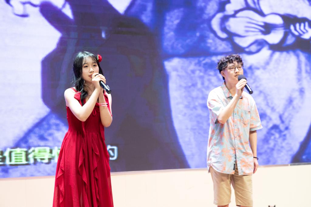 在“星霜荏苒”篇章中,仇金彰等人表演的小品《超级达人秀》以幽默有趣引得现场笑声不断;毕业生辅导员韩冰与学生深情对唱《直到世界尽头》,每一位老师都希望学生“有一颗自己的星球”,并愿意“陪你昂首直到世界尽头”;黄忆嘉同学用刚柔并济《太极拳》武术表演,诠释着青春的坚韧、生命的不屈;李坤禹、陆增文等人用歌曲《彩虹》、《匆匆那年》唱出了对青春的感慨,对大学生活的不舍。