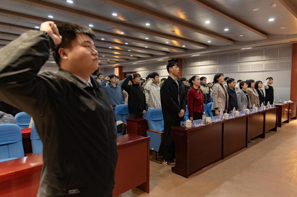 、化工学院、材料学院于J6-434联合举办2024年下半年新发展团员入团仪式暨“青马工程”基础班开班仪式。本次活动以“强国有我,青春挺膺”为主题,旨在培养青年团员的责任感和使命感,同时为党培养和输送青年政治骨干。校团委书记高一丹、材料学院党委副书记兼副院长李建楠、校团委正科级干部耿倩出席仪式,化工学院团委书记易凡、材料学院团委书记马韶霞及三个学院的团干部、团员代表、新发展团员、全体青马班学员参加仪式。仪式由完场比分