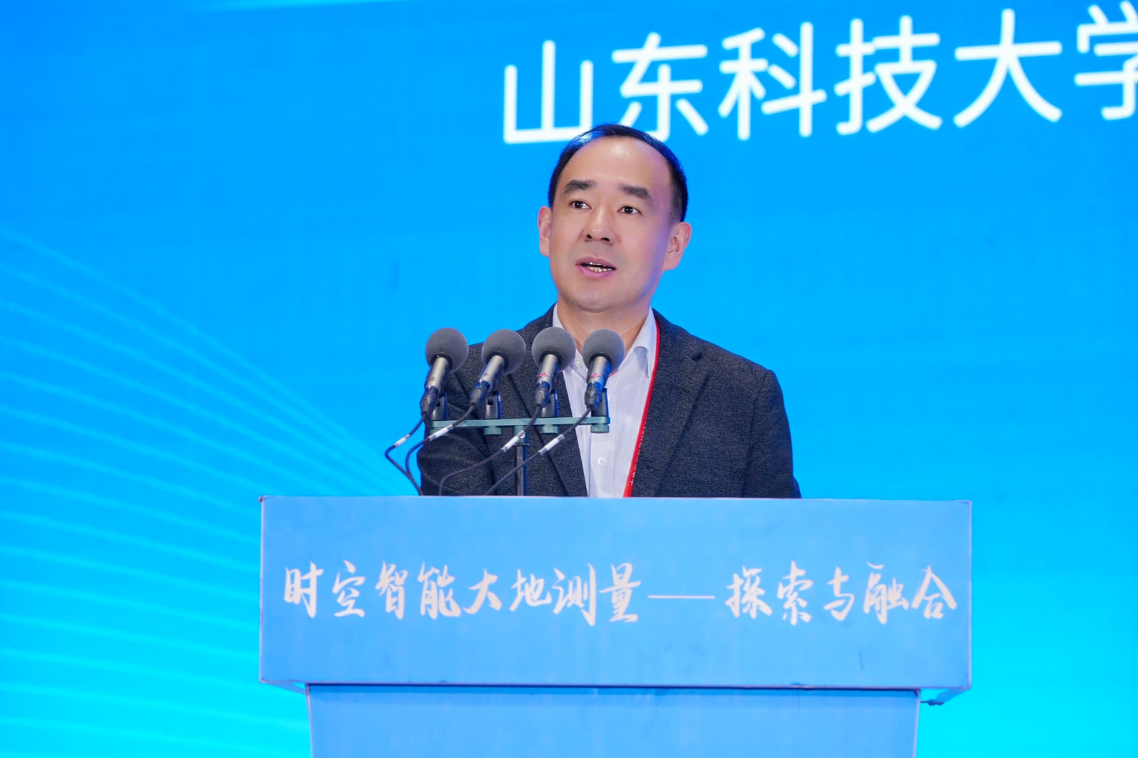 曾庆田在致辞中代表山东科技大学对与会院士、专家及青年学子表示欢迎,介绍了学校发展概况及近年成就。他表示,测绘地理信息是数字中国建设和数字经济发展的时空基底,也是培育新质生产力的关键要素。他认为,随着现代测绘基准体系完善及北斗系统广泛应用,测绘技术为数字中国提供了重要支撑。他呼吁各方深化合作,推动学术创新、技术突破与人才培养,为大地测量与导航领域高质量发展注入新动能。