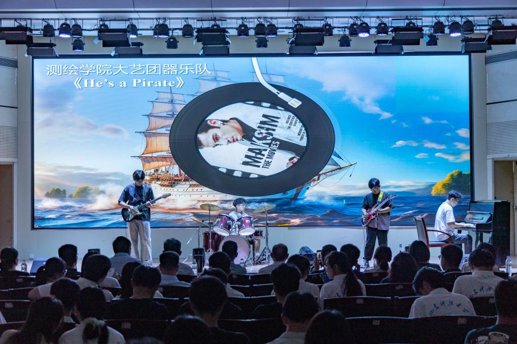 本次晚会分为两个篇章,在第一篇章中,器乐演奏《加勒比海盗》激昂奏响,旋律如海浪般汹涌,展现青春的无畏与勇敢;《找自己》以细腻声线,传递毕业生对自我成长的探寻;研究生郭奕彤表演的街舞《scream》激情迸发,用动感舞姿诠释青春的热烈张扬;声乐队演奏《裹着心的光》,温暖歌声似校园里的点点星光,照亮毕业生前行之路,展现出青年学子昂扬向上的精神风貌。优美的舞蹈,动情的旋律充分展现了毕业生们多才多艺的一面,也表达了他们对母校的眷恋、对师长的感恩以及对未来的憧憬。
