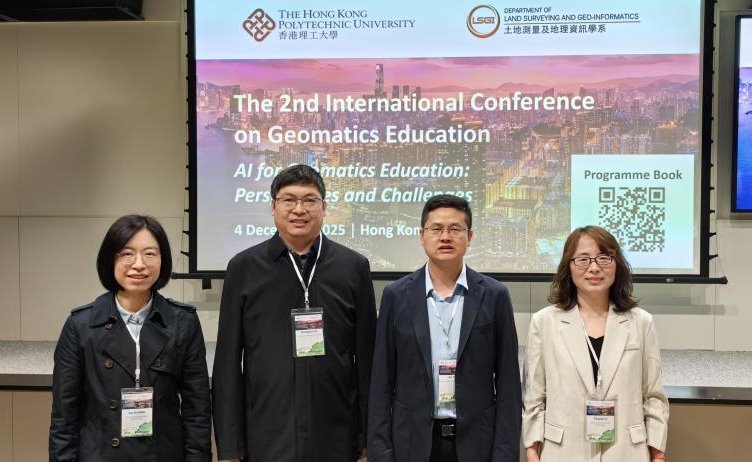 院长涂锐一行应邀赴香港,参加在香港理工大学举办的第二届国际地理信息科学教育会议(ICGE 2025),并开展了一系列学术交流与合作洽谈活动。学院副院长刘尚国、测绘系主任李艳艳、遥感系主任黄珏随团参加。