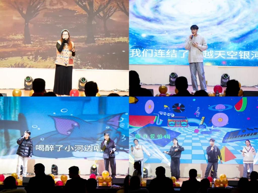 晚会以研究生会带来的开场舞《创意青蛙舞》拉开序幕,瞬间点燃全场热烈氛围;遥感系工会合唱《大中国》气势恢宏,唱响对祖国的深厚情感与时代豪情;刘憬潼等同学的舞蹈《爵对无敌》活力四射,尽显青年学子蓬勃朝气;测绘团委呈现的配音秀《当派大星追到电话诈骗》幽默生动,赢得现场阵阵欢笑与掌声;张颖初表演的舞蹈《加油呀!小黄鸭》活泼灵动,为晚会增添了清新欢快的色彩。进入第二篇章,海测系工会的合唱《我们走在大路上》铿锵有力,阎然等合唱的《欢乐中国年》喜庆祥和,测绘系工会的合唱《相亲相爱》温暖动人,共同营造出团结向上、和谐奋进的集体氛围;蔡昕洋独唱《做自己的光不需要太亮》深情而坚定,传递出温暖而有力的精神能量。第三篇章中,研究生会的歌曲串烧《时光里的我们》以旋律串联美好记忆;研究生会演绎的《床单舞》诙谐生动,展现了同学们的创造力与表现力;机关工会的合唱《奔跑》昂扬激越,将晚会推向高潮;最终,地信系工会以合唱《一路生花》温情收束,为整场晚会画上圆满句号。整场演出精彩纷呈,生动展现了完场比分