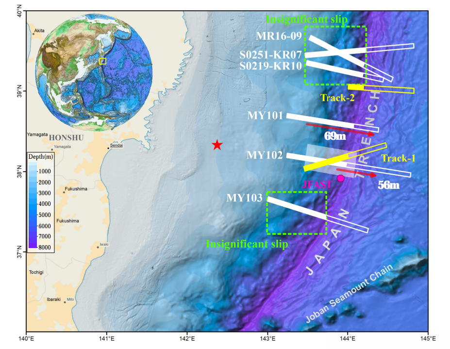 论文引文:Zhang, K., Wang, Y., Luo, Y., Zhao, D., Wang, M., Yang, F., Wu, Z. Complex tsunamigenic near-trench seafloor deformation during the 2011 Tohoku–Oki earthquake. Nat Commun 14, 3260 (2023). //doi.org/10.1038/s41467-023-38970-z