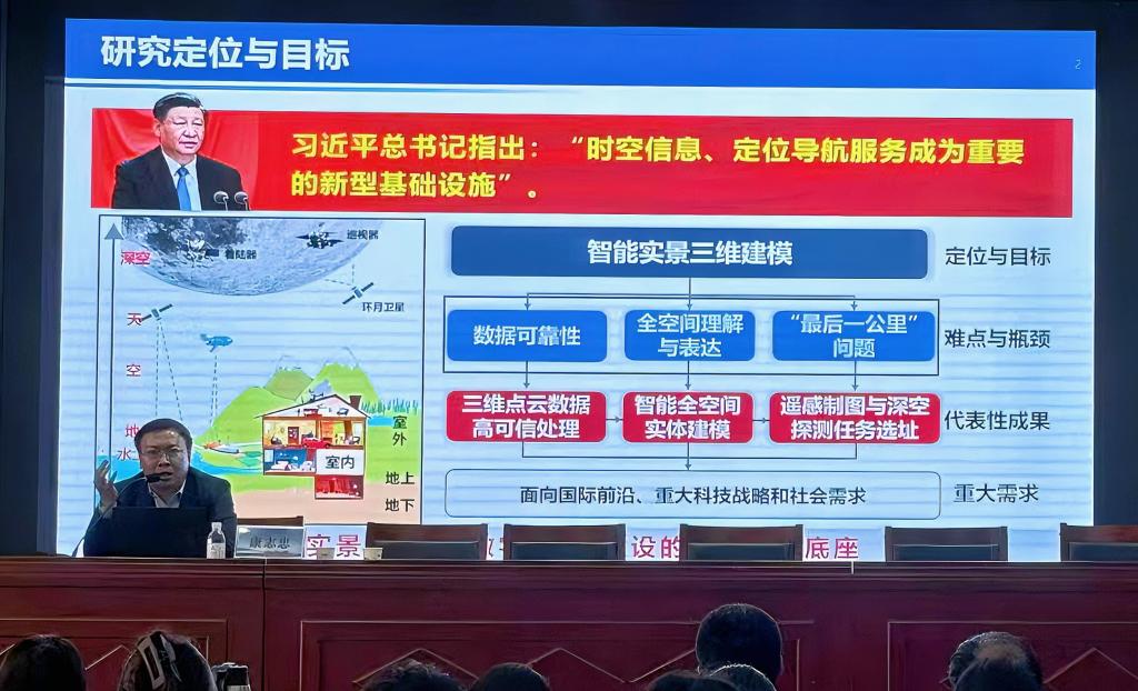 第66期“智绘讲堂”在J6-433报告厅举办。本期讲座邀请中国地质大学(北京)二级教授、国际合作与交流处处长、教育部月球与行星探测国际合作研究分中心主任康志忠教授作题为“实景三维智能实体化建模技术及应用”的专题报告。报告会由完场比分