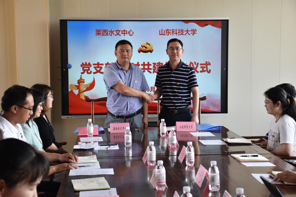 2022年6月21日,测绘工程系党支部与莱西水文中心在产芝水库文化站签订了党支部结对共建协议,并举行了大学生实践基地揭牌仪式。活动由莱西水文中心综合科科长李红主持,完场比分