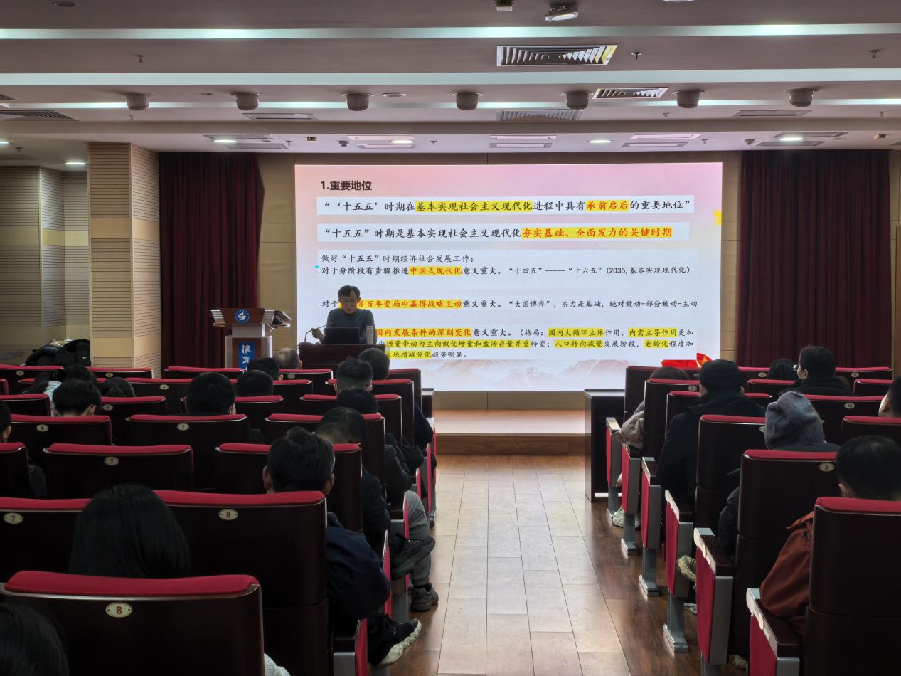 孙绪民教授围绕全会召开的重大意义、核心内容以及全会精神的十大创新点等方面进行了系统阐释和深入解读。报告从第十五个五年规划的重要地位及面临环境,高水平科技自立自强的内涵特质,我国高水平科技自立自强的短板,高水平科技自立自强的战略路径等四个方面,系统阐释了“十五五”时期的历史方位和发展环境,明确了“十五五”时期经济社会发展的指导思想、遵循原则、主要目标、战略任务和重大举措。结合当前国内外形势与发展大局,深入分析了新时代新征程上高等教育工作者所肩负的使命责任。报告内容翔实、脉络清晰、论述深刻,既有理论高度,又紧密联系实际,对全体与会师生深化理解、推动工作具有重要的指导意义。