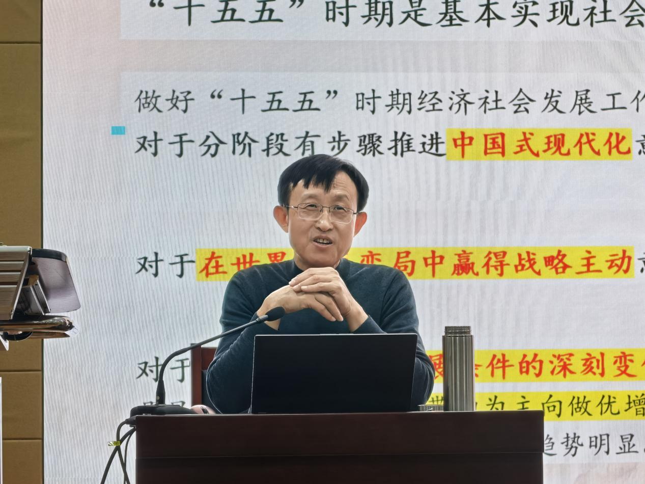 党委组织举办党的二十届四中全会精神专题辅导报告,特邀学校“山海泉”理论宣讲团成员,马克思主义学院教授孙绪民作题为“高水平科技自立自强的内涵特质与战略路径-学习贯彻二十届四中全会精神”专题辅导报告。学院领导班子成员、全体教职工、学生党员代表参加,报告会由学院党委书记范俊峰主持。