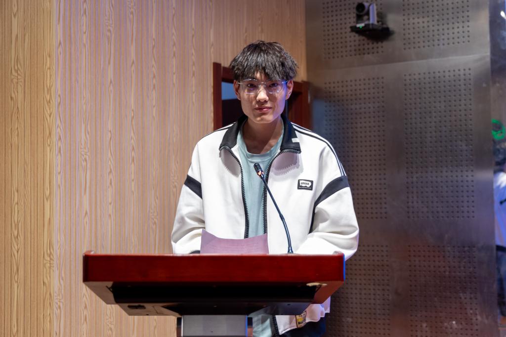 教师王艳丽代表裁判员宣誓,学生邱帅康作为参赛选手代表发言。