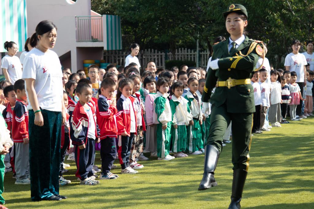 上午9点,升旗仪式正式开始。国旗护卫队队员身着正装,迈着坚定的步伐,守护着鲜艳的五星红旗走向升旗台。在庄严的国歌声中,五星红旗冉冉升起,小朋友们目视国旗,心中充满了敬仰与自豪。