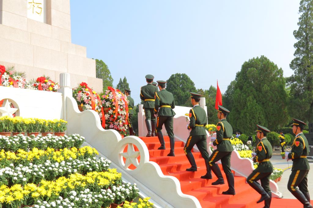 “天地英雄气,千秋尚凛然。”9月30日上午,国旗护卫队应邀前往西海岸新区烈士陵园,参加西海岸新区2023年敬献花篮仪式。上午九时三十分,礼宾乐奏响,八名队员手抬花篮步缓步走上台阶,将花篮献给英雄革命先烈;台下标兵就位,持礼宾枪分立于两侧。仪式过程庄重肃穆,圆满完成了本次礼宾任务。活动结束后,队员们手持鲜花,共同缅怀革命先烈的英灵,表达对革命烈士的无限哀思和崇敬之心。国旗护卫队高亮说:“我们今后将更加刻苦训练,以实际行动缅怀先烈、致敬先烈,在奋力奔跑中奉献青春力量!”