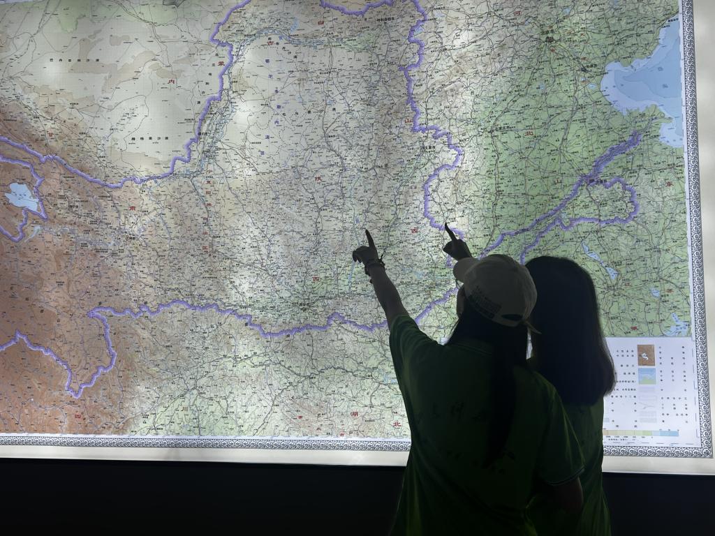 文化馆的建筑方正,形似中国传统礼器——鼎的造型,正面上方镶嵌着黄河儿女战天斗地、繁衍生息的巨幅浮雕。成员们学习了关于黄河和东营的故事,深刻体会到了黄河文化馆通过“志说黄河、志说东营”形式展现的宏观、立体、人文、生动的黄河。感受到黄河的波澜壮阔和黄河文化的博大精深。馆内以“大河奔流”为主题,分为“中华母亲河”和“魅力黄河口”两大板块,共设八个展厅,内容涵盖黄河起源、大禹治水、历史上黄河六次大改道、沿岸风土人情、东营的历史文化、胜利油田的开发利用,以及当代黄海入海口的湿地保护等篇章。学生们在参观的过程中,在指导老师崔晓东老师的指导下,通过学科专业视角对展馆内容进行深度解读,将专业知识与展馆内容相连接,从遥感技术的视角解读黄河的形势与变迁,通过海洋测绘技术展现黄河入海口的湿地保护与海洋资源利用等重要篇章。