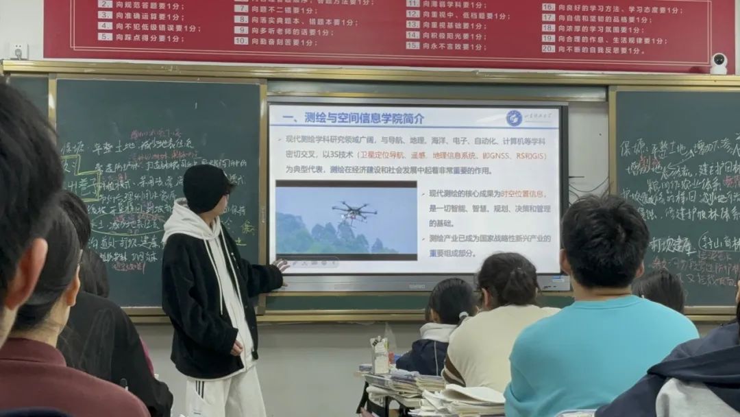 我衷心希望这次宣讲,能在学弟学妹们心中种下知识与梦想的种子,激发他们对测绘与空间信息领域的探索热情和增加对高考的信心,吸引更多有志青年加入我们的大家庭,共同为测绘事业的发展贡献力量,携手绘制更加辉煌的未来蓝图。