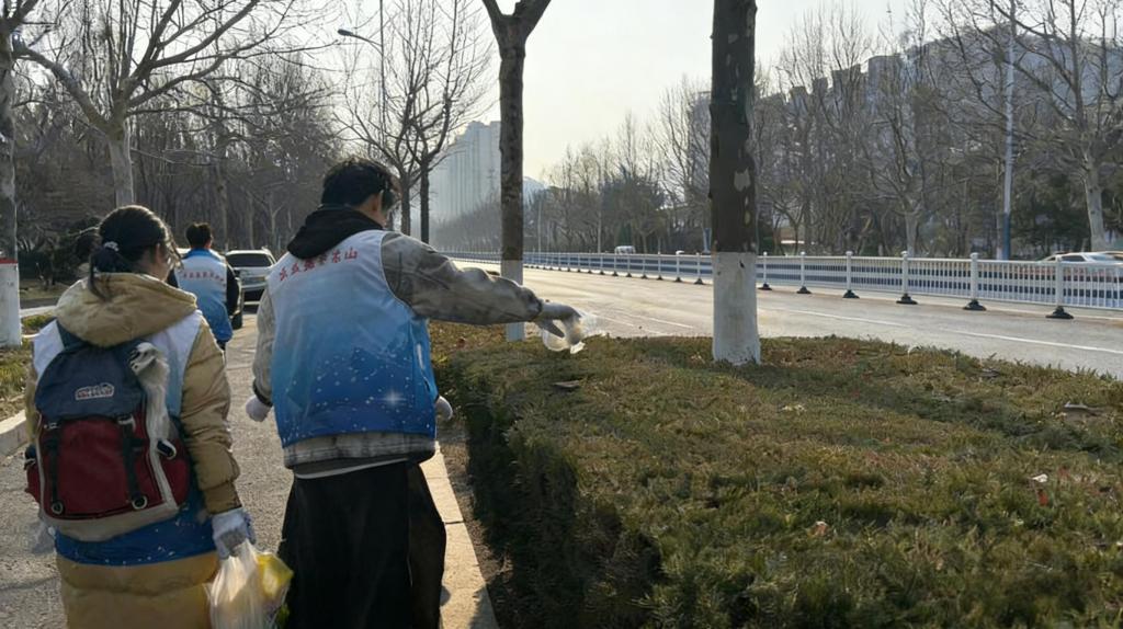 活动现场,志愿者们准时集结完毕,统一着装、领取清洁工具,在工作人员的统筹安排下明确分工、迅速行动。大家手持扫帚、垃圾夹、垃圾袋等工具,以饱满的热情奔赴各自责任区域,开启清扫工作。志愿者们分工协作、默契配合,重点对人行道、绿化带、公交站点、宣传栏等区域开展精细化清理,细致捡拾纸屑、塑料袋、烟头等散落垃圾,认真擦拭公共设施上的顽固污渍,对隐蔽的卫生死角进行彻底清理,不留一丝死角、不落一处垃圾。清扫过程中,志愿者们充分发扬不怕脏、不怕累、不怕苦的优良作风,躬身劳作、齐心协力攻克清理难点,用双手清理杂物、擦亮公共设施。经过一番认真清扫,校园南门街道焕然一新,路面干净整洁、绿化带清爽有序、公共设施洁净如新。志愿者们忙碌的身影穿梭在春日街头,成为一道靓丽的文明风景线,赢得过往师生与行人的纷纷点赞。