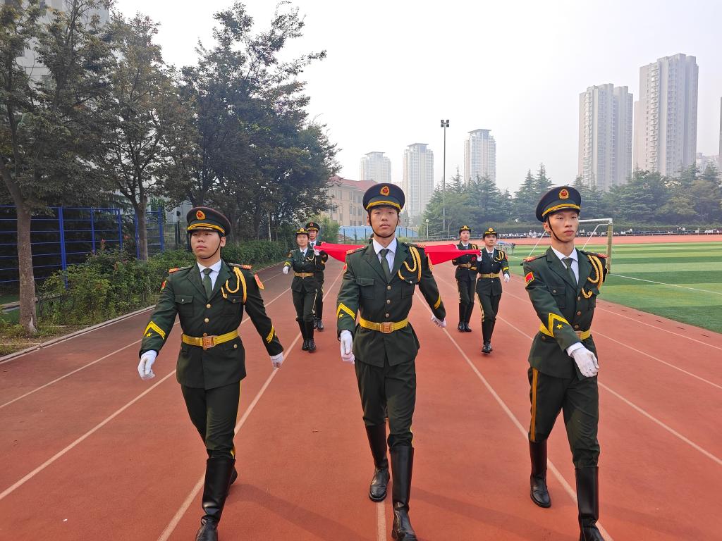 9月30日,山东科技大学国旗护卫队受邀承担育才中学秋季运动会开幕式礼宾任务。队员们步伐整齐、动作标准,圆满完成了护旗与升旗全流程,为运动会注入了浓厚的爱国热情与青春朝气。