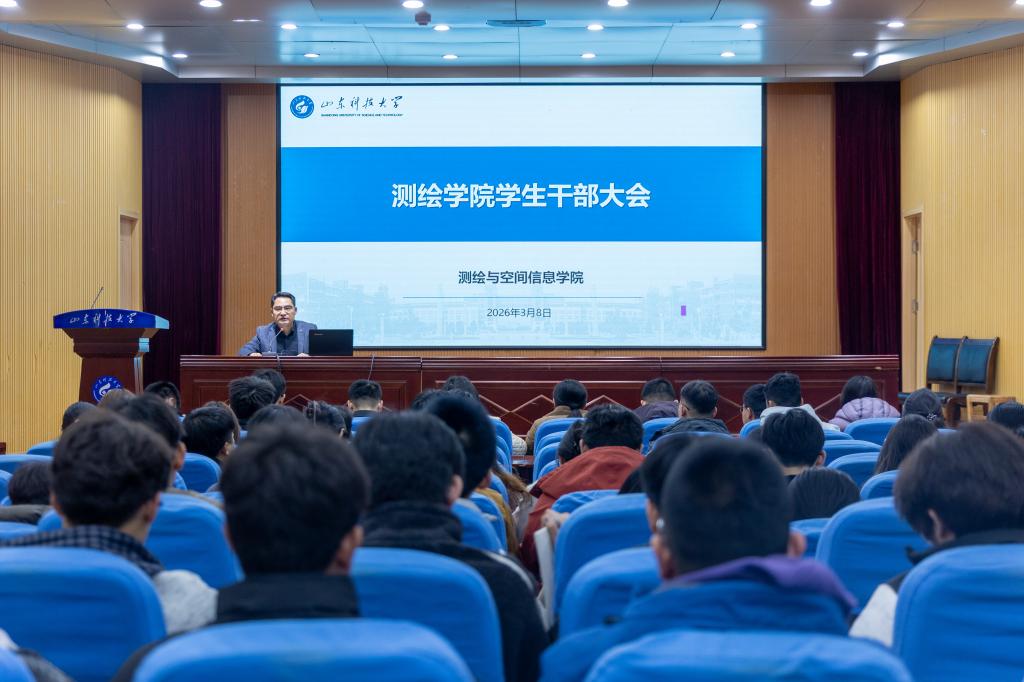 会上,学院党委副书记兼副院长吴昊围绕2025年学生工作回顾、工作不足及分析、2026年重点工作三个方面进行讲解。他总结了学院上一年度在党团建设、新闻宣传、科技创新等方面取得的成绩,并结合学院实际,对第二课堂、应征入伍、就业工作、学风建设、公寓卫生和违纪等方面存在的短板与不足进行了细致分析,并对新学期重点工作作出部署安排。他表示,学生干部既是学院学风建设、学科发展的参与者、推动者,也是联系同学、服务师生的桥梁纽带,是推动学院各项学生工作落实落细的重要力量,希望学生干部进一步增强责任意识和奉献意识,主动融入学院发展大局,在组织同学、服务同学、帮助同学中展现担当作为,以更加饱满的热情、更加务实的作风、更加过硬的本领,当好思想引领者、专业领跑者、服务奉献者、纪律示范者。