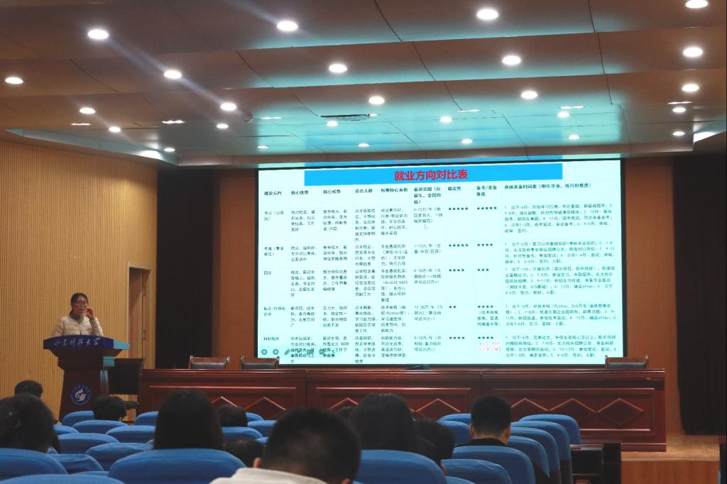 会上,曹梦婷结合学院近两年研究生实际就业数据,全面梳理毕业生就业态势、行业分布及单位去向,通过真实案例直观呈现测绘学科就业前景与竞争格局,助力同学们精准认知行业现状。
