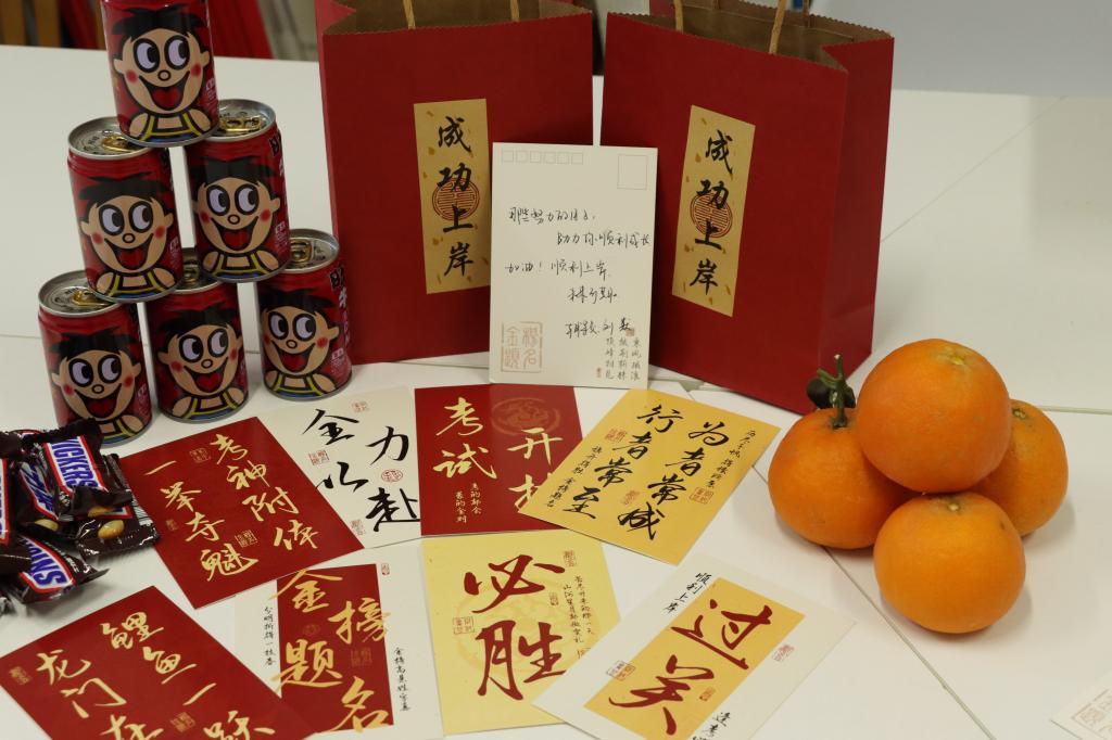 学院为考研学子精心准备“成功上岸”暖心礼袋,每一份礼袋中都有辅导员老师手写考研祝福贺卡,寄托着学院对考研学子们的亲切关怀和殷殷祝福。橙子代表着心想事“橙”,巧克力寓意“力”跃龙门,旺仔牛奶祝福同学们一“旺”到底,期望同学们在考场上展现最出色的自己。