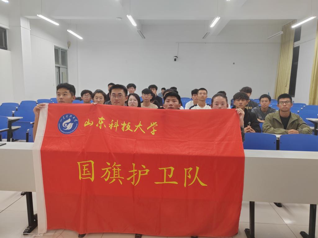 为庆祝祖国母亲74岁华诞,山东科技大学国旗护卫队举办“红旗飘扬 喜迎国庆”系列活动,用激昂青春祝福伟大祖国繁荣昌盛!国旗护卫队党支部、团支部及全体队员参加活动。同唱队歌,向国旗致敬“伴着庄严的乐曲,我们升起了国旗……”。9月27日,国旗护卫队全体新老队员同唱《国旗护卫队队歌》,用歌声表达对五星红旗的热爱和祝福。“还记得刚入学军训的第四天下午,我就被国旗护卫队的展示所震撼,今天我们齐唱队歌,我内心充满自...