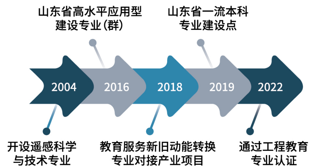 我校遥感科学与技术专业在2004年获批设立,并于2005年开始招生,是山东省首家、全国首批招收遥感专业本科生的4家高校之一。在2014-2015年中国大学本科专业竞争力排行、2017和2018年校友会排行均列全国第三。2016年获批为山东省高水平应用型建设专业(群),2018年获批教育服务新旧动能转换专业对接产业项目,2019年获批为山东省一流本科专业建设点,2022年通过工程教育专业认证。