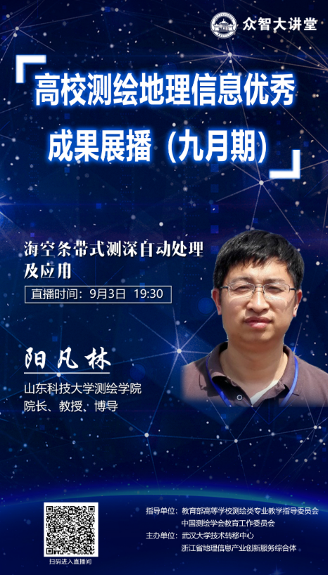 9月3日,7m足球完场比分 阳凡林教授受测绘教育“两委会”(教育部高等学校测绘类专业教学指导委员会、中国测绘学会教育工作委员会)邀请,担任“众智大讲堂-高校测绘地理信息优秀成果展播”(九月期)主讲专家。报告题目为“海空...