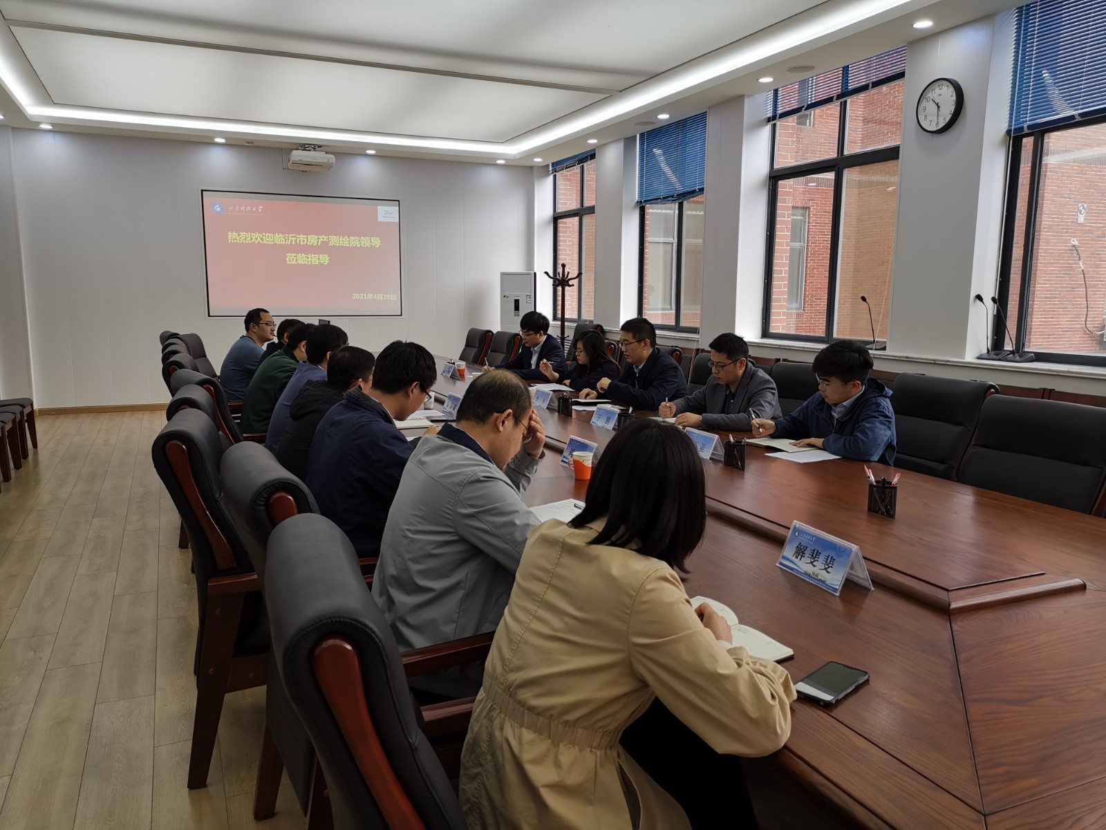 2021年4月29日,临沂市房地产测绘院院长李平、副院长于鹏、综合科负责人董秀玲、信息中心负责人张丕亚、测绘三中心业务主管张顺一行来7m足球完场比分 调研。完场比分 党委书记秦昌盛、副院长王瑞富、测量系主任周峰以及完场比分 部...