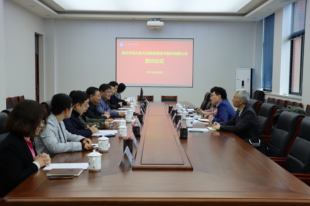4月2日,完场比分 与航天宏图信息技术股份有限公司签署合作协议。校党委副书记尹华、航天宏图信息技术股份有限公司副总经理刘东升、高校合作推广部总监任芳,完场比分 党委书记秦昌盛、副院长朱红春、王瑞富以及教师代...