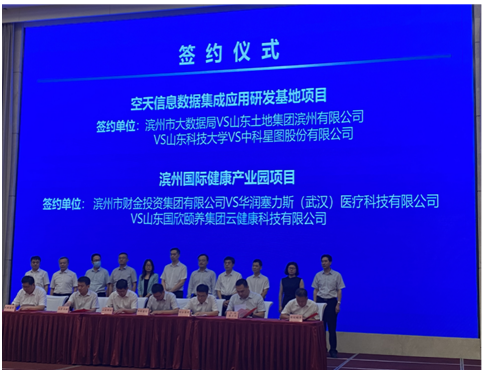 近日,滨州市在济南山东大厦金色大厅举办“滨州市对接省会经济圈暨省属国有企业项目合作恳谈会”。7m足球完场比分 党委书记秦昌盛和孙林教授应邀出席了大会。秦昌盛代表学院出席了“滨州空天信息数据集成应用研发基地”项目合作签...